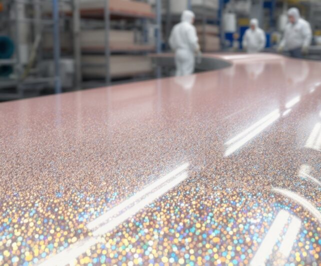 Перламутровое "металлическое" порошковое покрытие с мерцающими многоугольными цветовыми эффектами обеспечивает превосходную эстетику и надежную защиту поверхности для внутреннего и наружного использования.