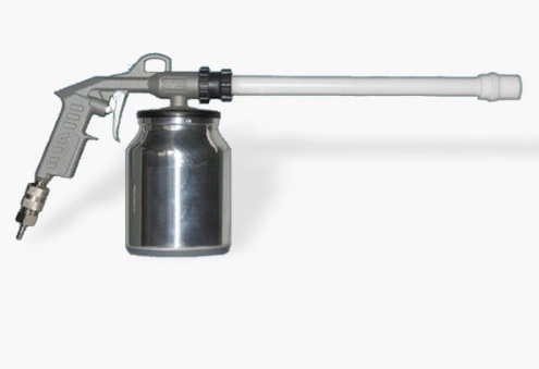 Напылитель оснащается бачком, емкостью 1 л, который можно легко заменить. Это особенно актуально при окраске деталей красками разных цветов.