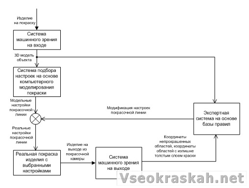 В обоих случаях для персонала покрасочной линии при переходе с одного вида изделия на другой возникает необходимость перенастройки режима работы оборудования линии. Ручной подбор настроек оборудования может занять много времени, что приводит к простою линии и соответствующим экономическим потерям, поэтому при запуске линии выбирают режимы, гарантированно прокрашивающие изделия большинства вероятных конфигураций, что устраняет задержки, но приводит к неоправданному перерасходу краски и некоторому увеличению массы изделия (из-за более толстого слоя красящих материалов).