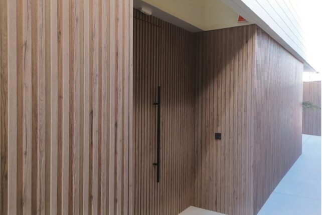 Компания Lacalum, подрядчик по нанесению покрытий, специализирующийся на обработке алюминиевых профилей и листов, более пятнадцати лет сотрудничает с I.DEK в области создания высококачественных эффектов, напоминающих древесину, для архитектурных проектов с сильным визуальным эффектом. Сочетание порошковых базовых покрытий класса 2 и сверхпрочных сублимационных пленок обеспечивает стабильность цвета и устойчивость к ультрафиолетовым лучам и атмосферным воздействиям, гарантируя отличные эксплуатационные характеристики с течением времени.