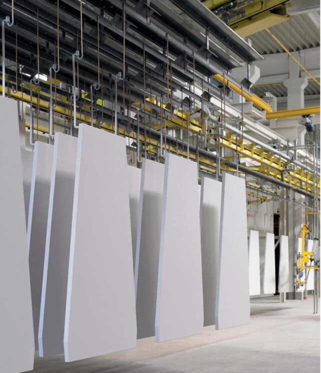 • Металлик сухого смешения: светлые, серебристые/хромированные цвета (например, аналогично RAL 9006). Эти порошки нестабильны в обороте рекуперата и относительно чувствительны к царапинам (чёрные метки). Повышенная опасность работы при содержании алюминиевого пигмента более 5% (дефлаграция).